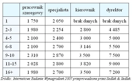 | Stanowisko | Średnie wynagrodzenie (brutto) |